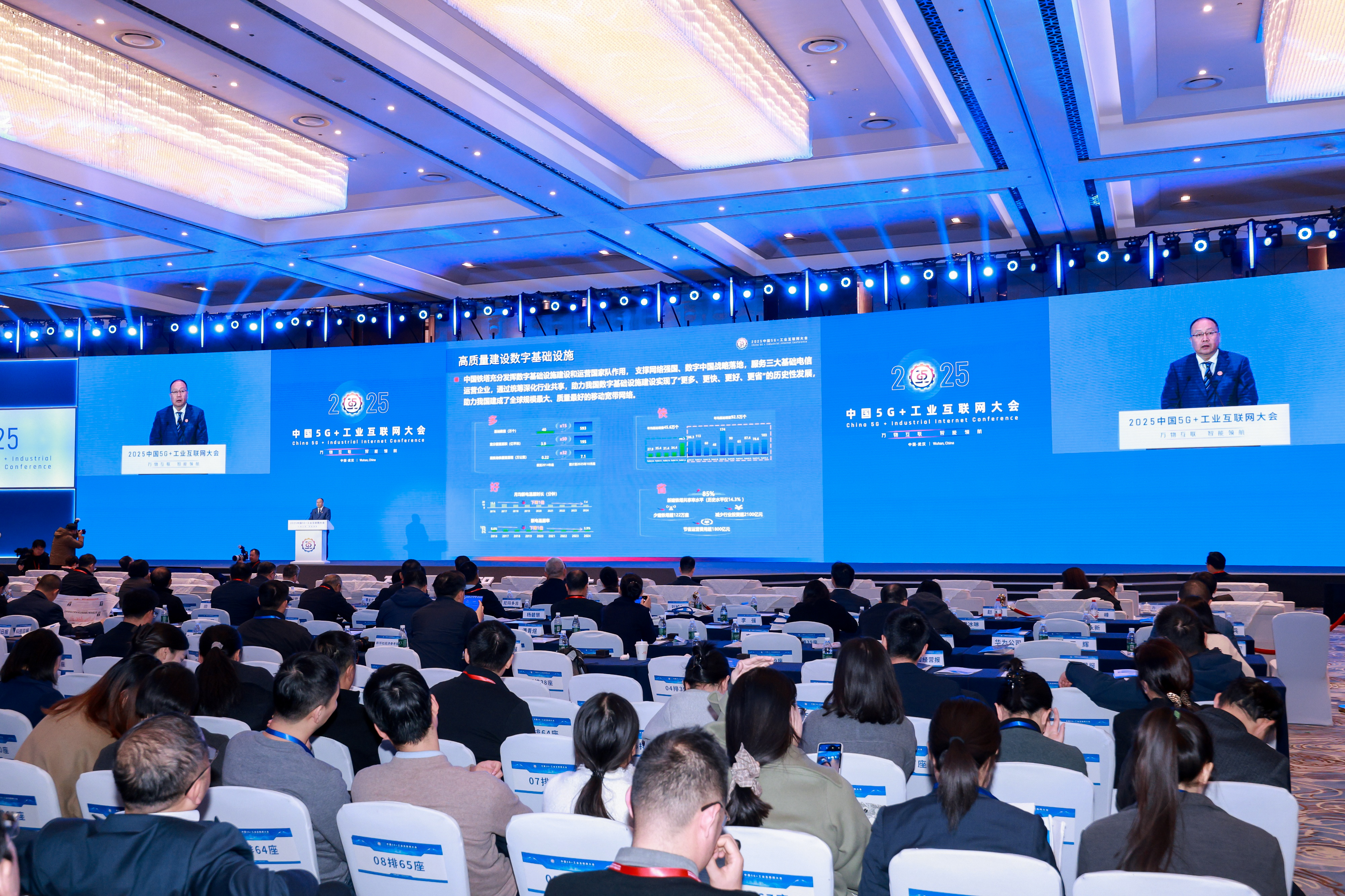 11月22日,2025中国5G+工业互联网大会在武汉开幕。工业和信息化部党组书记、部长李乐成,湖北省委书记、省人大常委会主任王忠林出席大会并致辞。湖北省委副书记、省长李殿勋,湖北省委常委、武汉市委书记盛阅春,湖北省委常委、省委秘书长彭勇,工业和信息化部总工程师钟志红,中国工程院原院长周济出席大会。大会开幕式由湖北省副省长程用文主持。中国铁塔总经理陈力在开幕论坛作主旨演讲。